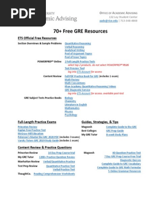 70+ Free GRE Resources - Rice University Peterson’s Master the GRE 2020 PDF (includes 3 exams) Varsity Tutors GRE 2019 Study Guide (includes 1 exam) Guides, Strategies, & Tips Magoosh. Complete Guide to the GRE Best Colleges GRE Prep Guide My GRE Tutor 8-week Study Plans Content Review & Practice Questions Princeton Review . 14 Day Prep Course trial. My GRE Tutor. 1200+ Practice ...